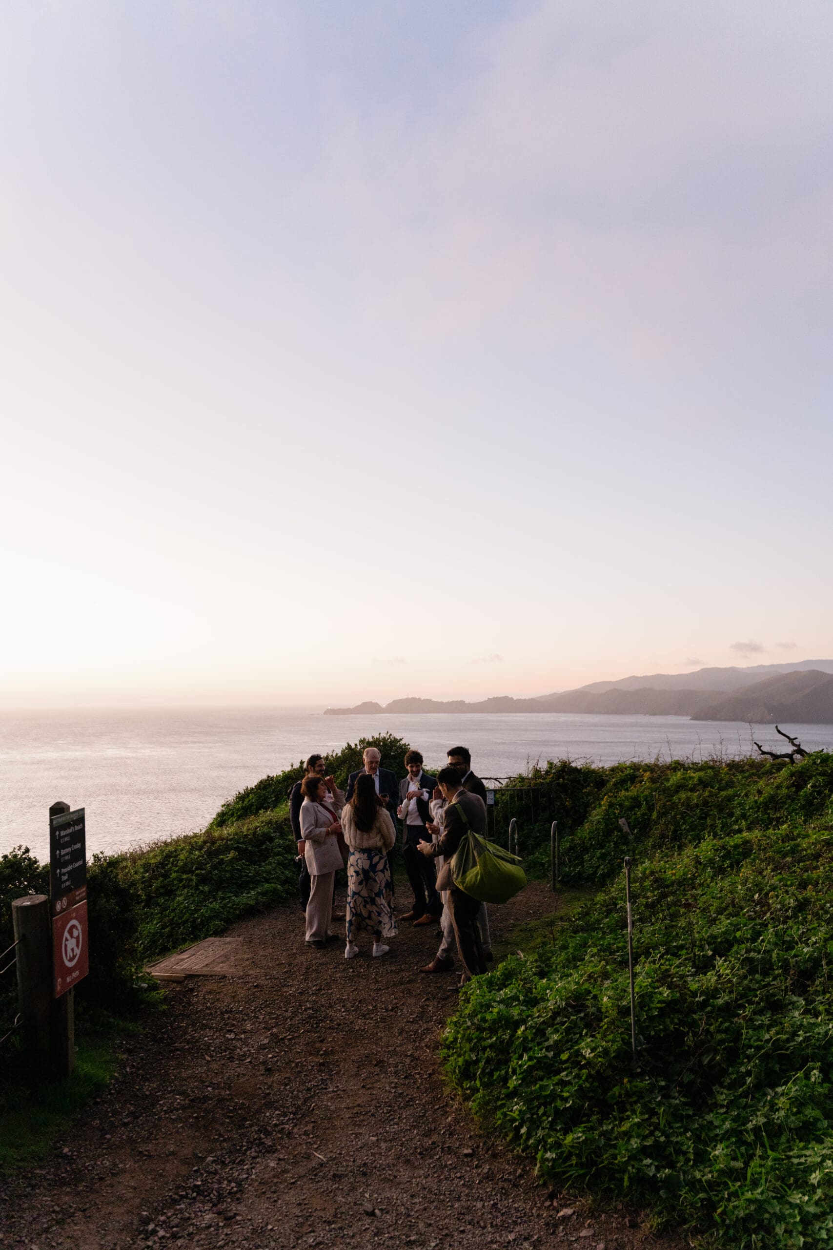Especially for couples coming straight from a San Francisco City Hall ceremony, I always recommend bringing a pair of comfortable shoes for the trek down. You can easily switch into formal footwear once we reach the water’s edge. The hike is part of the story, and the secluded feel of the beach makes the effort worth it.